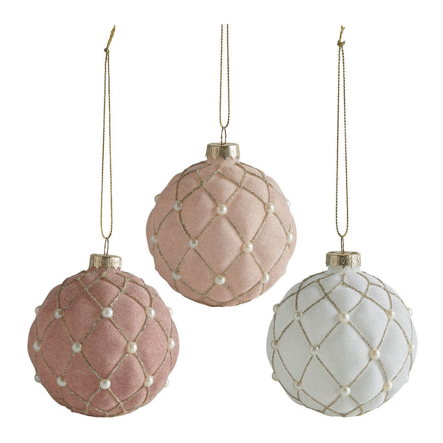 Set aus 3 Glas-Weihnachtskugeln mit Perlen – elegante Weihnachtsdeko von Mathilde M.