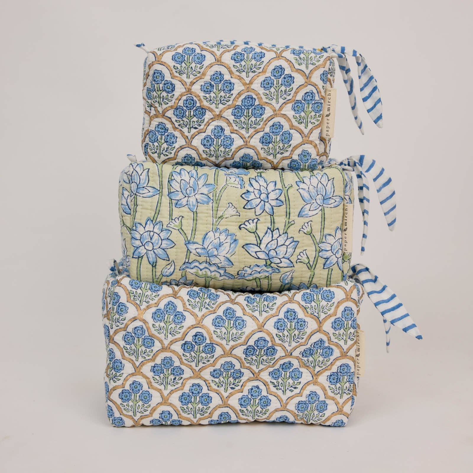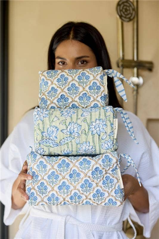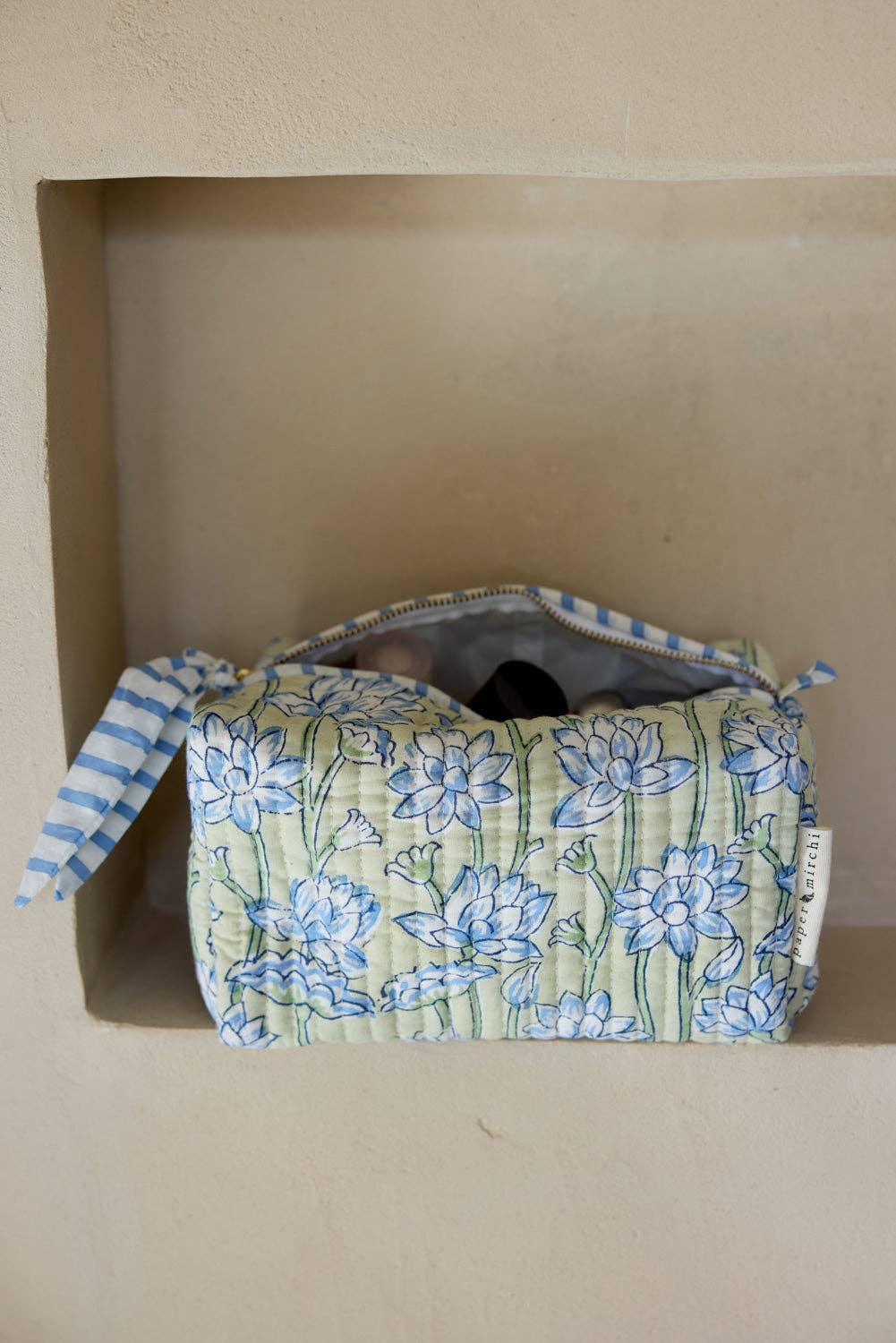 Der Kulturbeutel Lotus Indigo aus der On-the-Go Kollektion von Paper Mirchi vereint Kunstfertigkeit und Funktionalität in einem einzigartigen Design. Handgefertigt in kleinen Chargen und meisterhaft im Blockdruckverfahren bedruckt, zeigt dieser Kulturbeutel das bezaubernde Lotus Indigo Design, das Eleganz und Ruhe ausstrahlt. Aus weicher, luxuriöser Bio-Baumwolle gefertigt, ist dieser Kulturbeutel nicht nur ein praktisches Accessoire, sondern auch ein stilvolles Statement.
