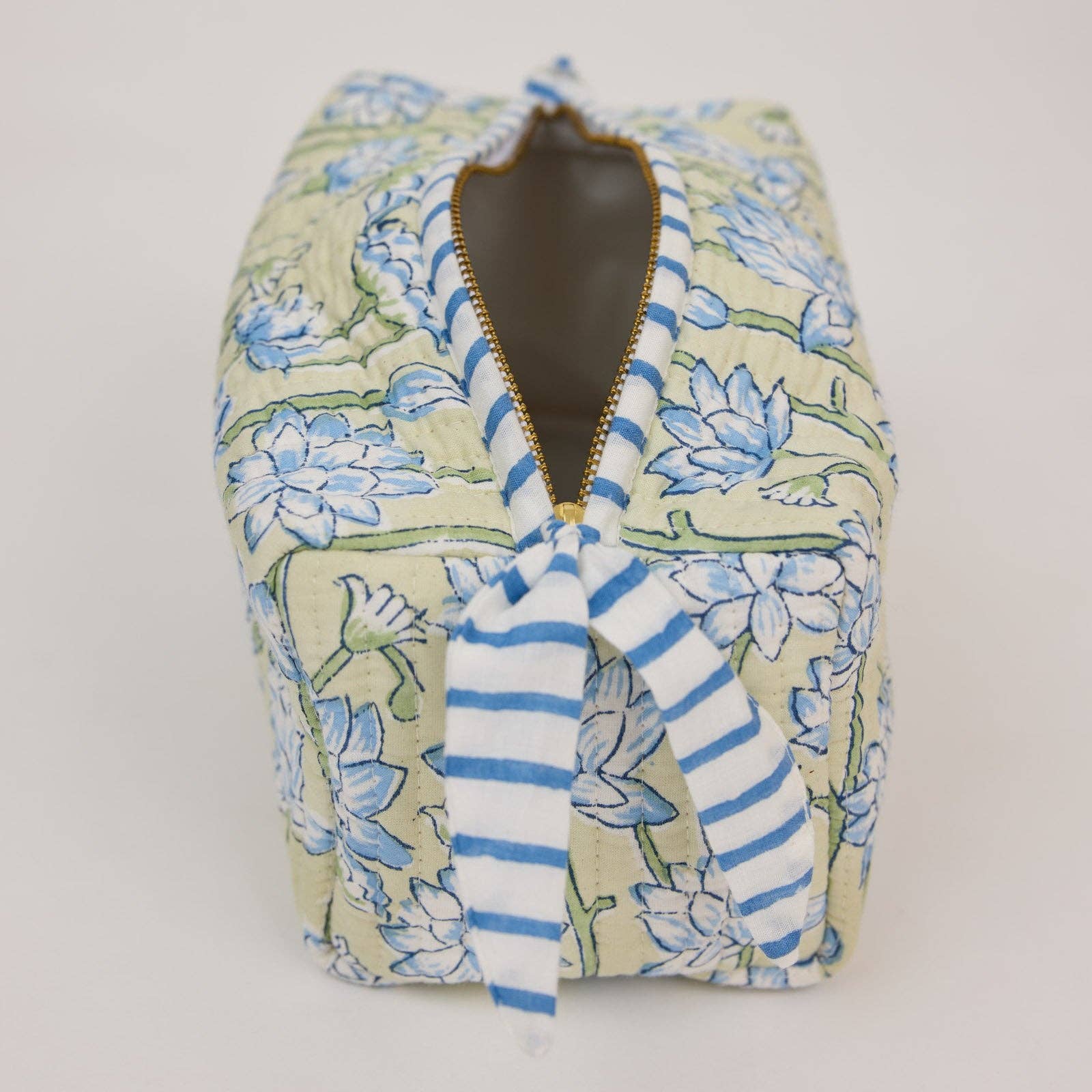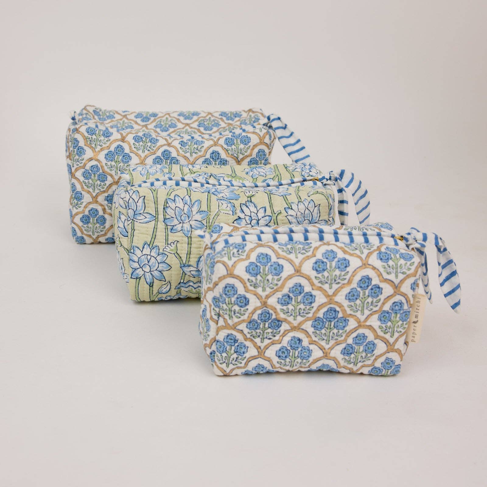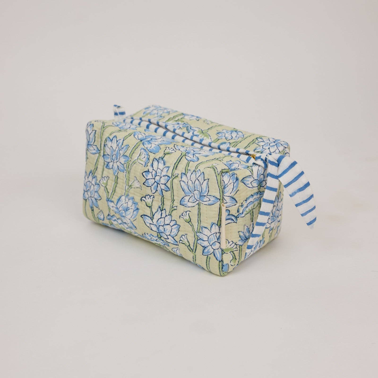 Der Kulturbeutel Lotus Indigo aus der On-the-Go Kollektion von Paper Mirchi vereint Kunstfertigkeit und Funktionalität in einem einzigartigen Design. Handgefertigt in kleinen Chargen und meisterhaft im Blockdruckverfahren bedruckt, zeigt dieser Kulturbeutel das bezaubernde Lotus Indigo Design, das Eleganz und Ruhe ausstrahlt. Aus weicher, luxuriöser Bio-Baumwolle gefertigt, ist dieser Kulturbeutel nicht nur ein praktisches Accessoire, sondern auch ein stilvolles Statement.