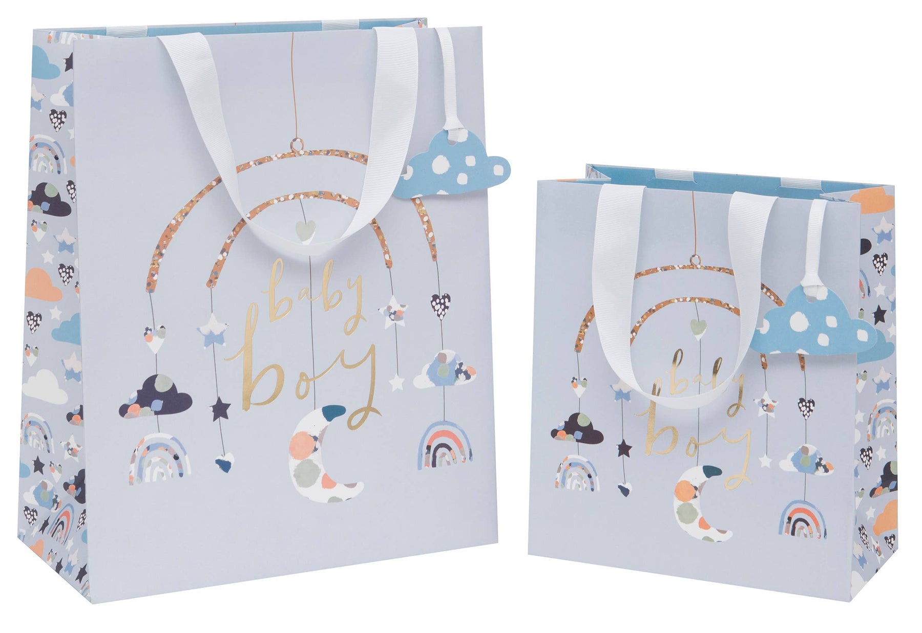 Die Geschenktasche Baby Boy ist die perfekte Wahl für das Geschenk zur Geburt eines kleinen Jungen. Mit ihrem süßen und liebevollen Design wird sie Ihrem Geschenk eine besondere Note verleihen. Die Tasche eignet sich ideal für Babyparty-Geschenke, Taufgeschenke oder einfach als hübsche Verpackung für jedes Geschenk zur Geburt.