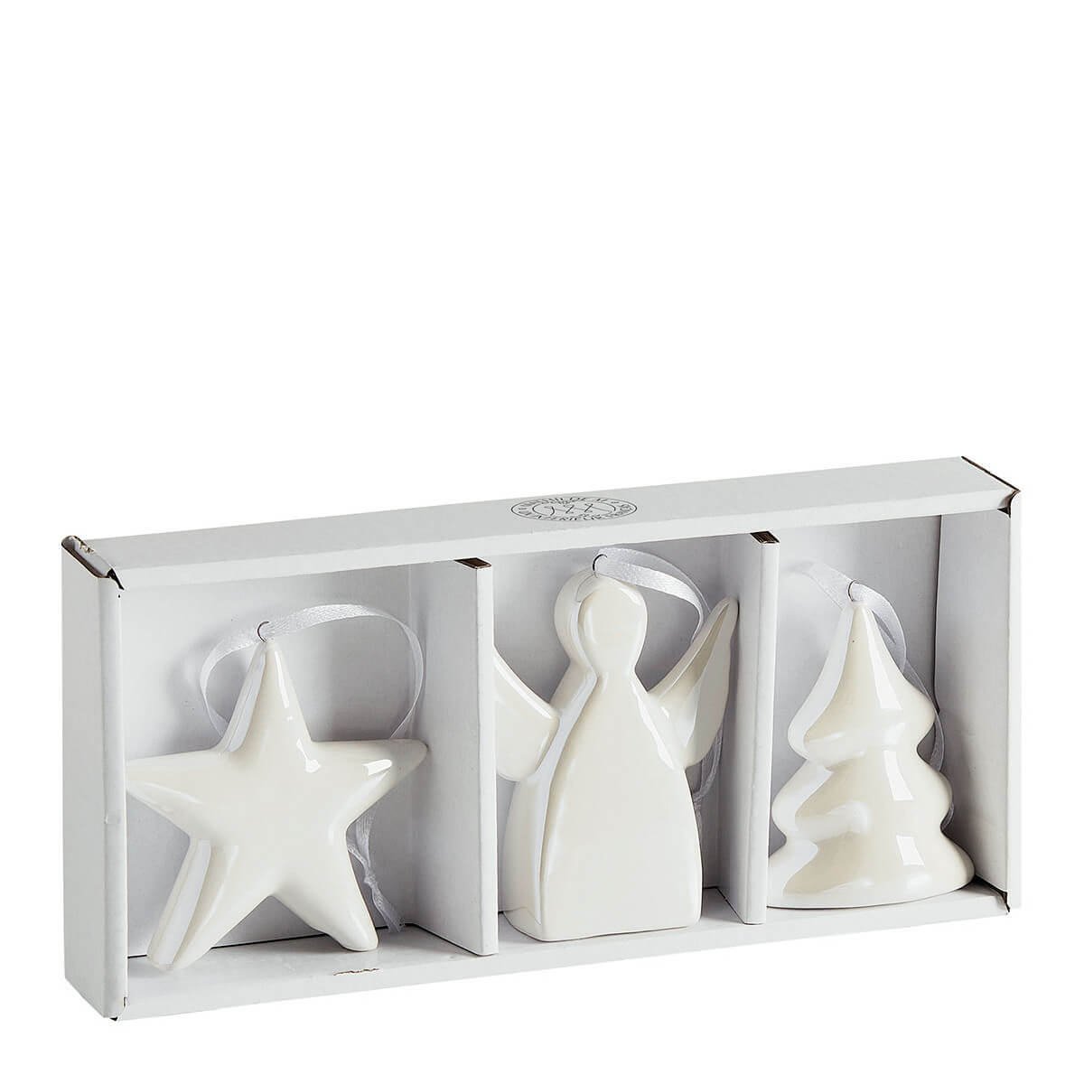 Dieses edle Set aus 3 Weihnachtsanhängern von Mathilde M. besteht aus feiner weißer Keramik mit zart irisierendem Finish – perfekt, um deinem Zuhause eine stilvolle, winterliche Note zu verleihen. Ob am Weihnachtsbaum, an Fenstern oder als liebevolle Tischdekoration: Die Motive Stern, Tannenbaum und Engel setzen festliche Akzente mit französischem Charme.