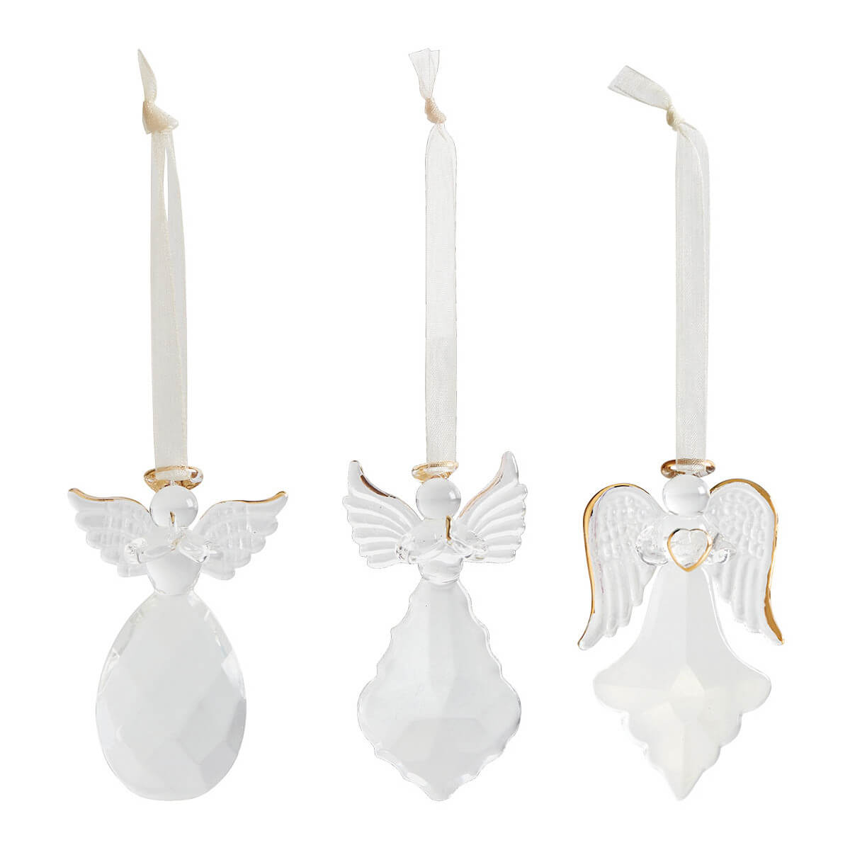 Set aus 3 transparenten Glas-Engeln zum Aufhängen